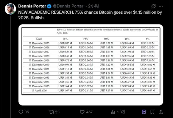 之前,MicroStrategy 预测比特币 2036 年将达到 240 万美元,ARK Invest 更激进地预测 2030 年 380 万美元。这些数字一直被大家批评为过于乐观,或者是屁股决定脑袋。