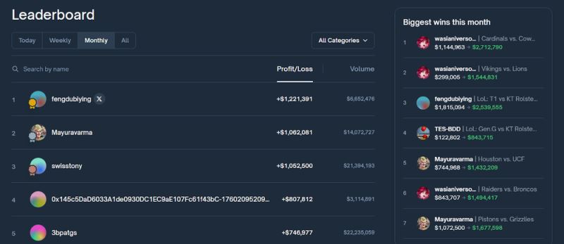 在预测市场中,真正用户参与多个类别(政治、体育、加密货币、全球事件)的参与情况是一个明显的标志。投机者很少这样做,而真正的用户自然会分散他们的活动。
