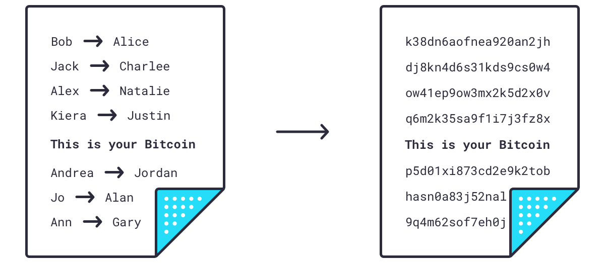 首先,他们将区块中的每一笔交易都输入到一个算法中,该算法会对每笔交易生成一个由 64 个字母和数字组成的唯一标识签名,称为哈希值。