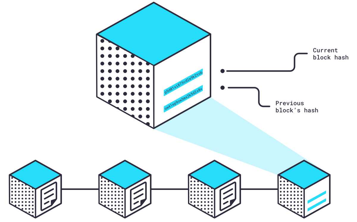 现在,我们的区块包含代表当前区块所有交易的哈希值,以及代表前一个区块所有交易的哈希值。这就是“区块链”中“链”的形成方式。如果之前任何一个区块中的单个字节数据发生改变,都会导致所有后续区块失效,因为之后每个区块的哈希值都会改变,从而破坏区块链。